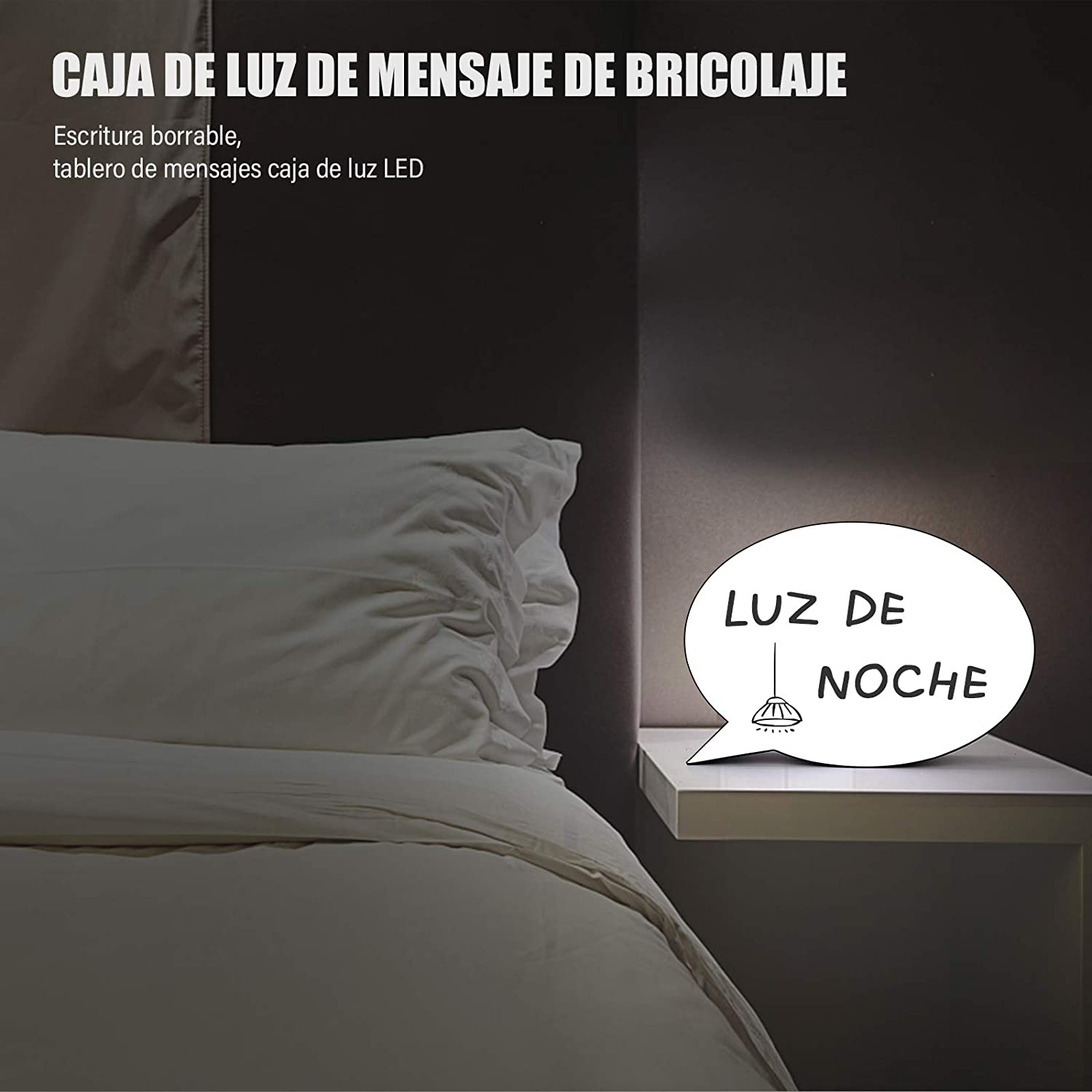 Caja de luz manuscrita: No necesita una tarjeta, puede, de acuerdo con su espíritu y pensamientos, elegir escribir contenido como fuentes o dibujos. También puede cambiar los mensajes simplemente por usted mismo, La tapa posee un borrador para dejar limpio el letrero cada vez que decidas cambiar el mensaje.
